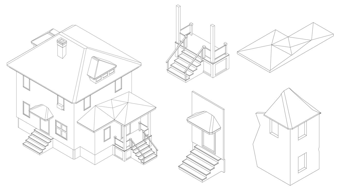 their core elements and introduce new ways of utilizing them. For instance, this model was made of two of the same components, each made with two roof parts, a porch stair, and a side entry door.
