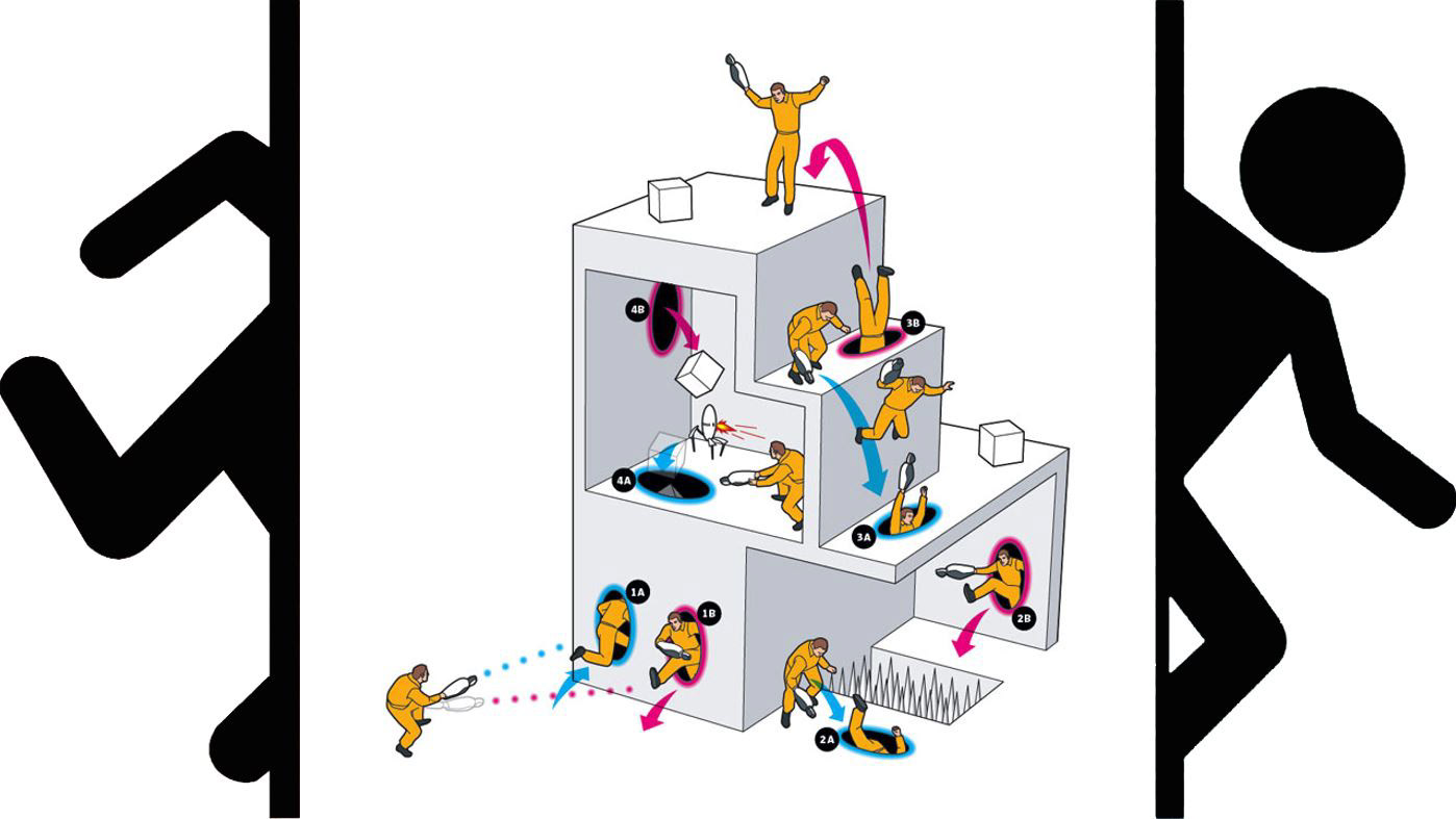 A good example of this portal mechanism comes from a game called "Portal" made by Valve.